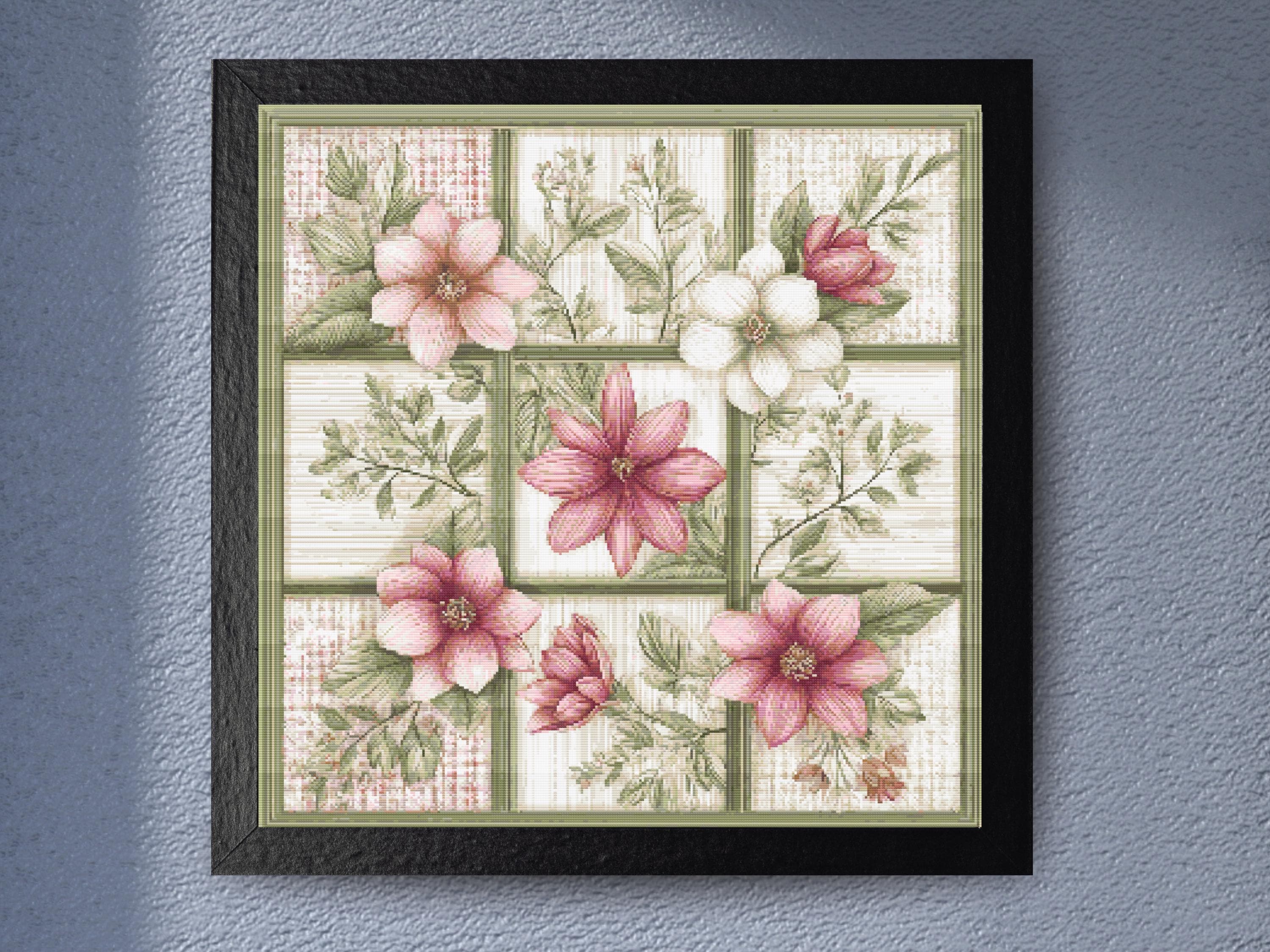 Elegant Botanical Flower Grid with Vintage Charm – Floral Cross Stitch PDF for Home Décor or GiftItem #LTJ-1356