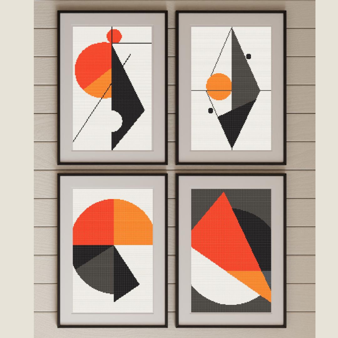 Mid Century Modern Set of 4 - Retro Cross Stitch 70's InspiredItem #LTJ-1446