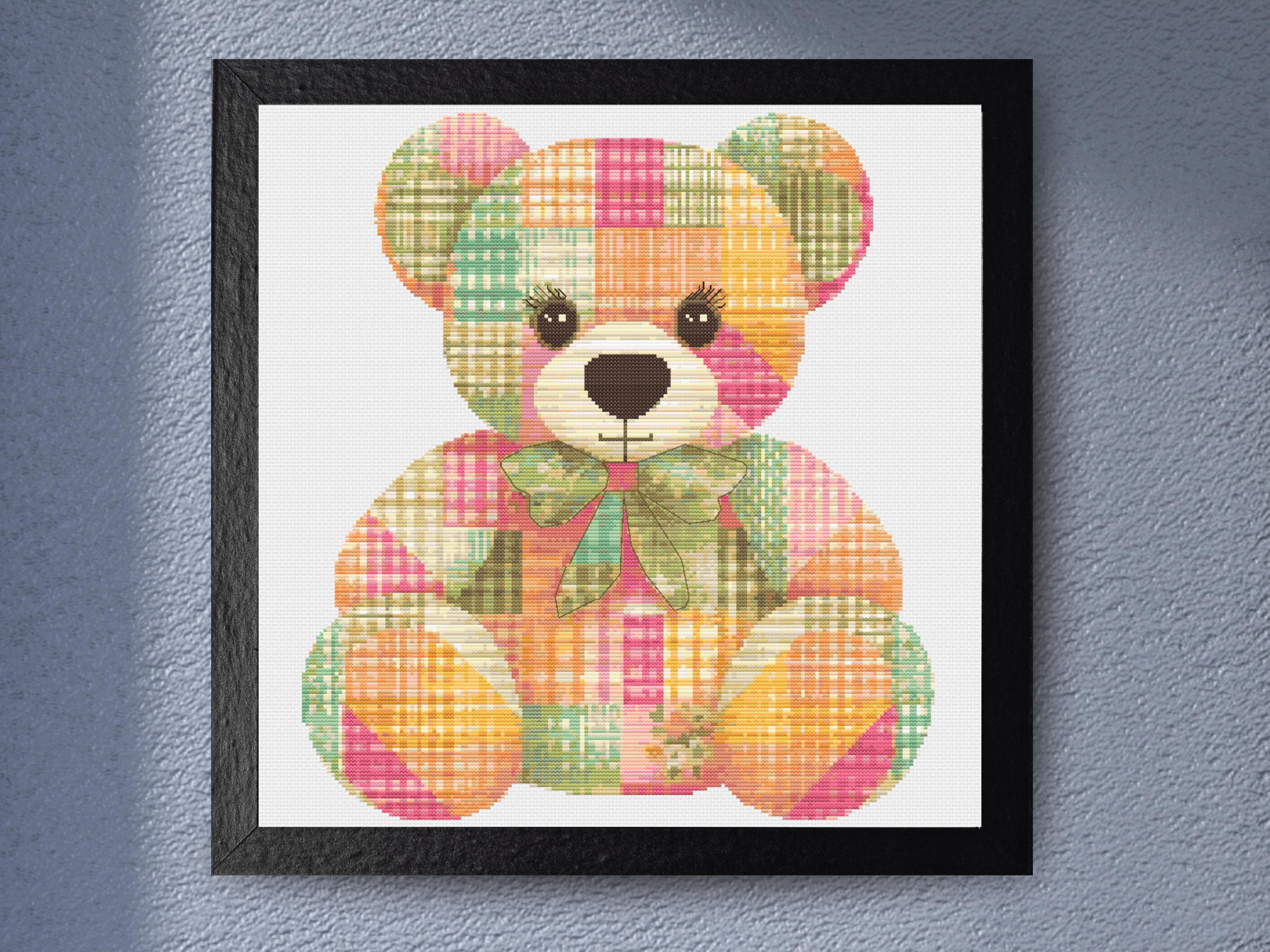 Title: Patchwork Teddy Bear Cross Stitch Pattern - Plaid Stuffed Animal Design with Bow, Baby Nursery DIY Embroidery for Gifting & Decor Description: Stitch up the sweetest piece of nostalgia with this Patchwork Teddy Bear Cross Stitch Pattern, featuring a cuddly bear made entirely from cheerful plaid fabric textures in pinks, oranges, greens, and golds. Finished with a soft bow and sparkling eyes, this timeless design is perfect for nurseries, baby gifts, or anyone who loves retro toy aesthetics. The color-blocked, patchwork look gives it a handcrafted charm reminiscent of handmade quilts and childhood keepsakes. With minimal backstitching used only for fine features and detail lines, this project is full of warmth and heart. Whether you’re creating a heartfelt baby shower gift or stitching for your own child’s room, this pattern brings joy and comfort in every square. Pattern Details: Design Area: Approximately 200 x 200 stitches Actual Number of Cross Stitches: 25,257 full cross stitches + minimal backstitching Fabric: 14 Count Aida (recommended) Stitch Types: Full cross stitches with minimal backstitching (mainly for facial features) Colors Required: 30 DMC colors Color Palette: Muted pinks, cozy corals, olive greens, pale yellows, and warm browns for a soft and playful finish What's Included: PDF Full-color chart with DMC color codes PDF Black & white chart with DMC color codes PDF optimized for Pattern Keeper SVG Pattern files in color and black & white Why You'll Love This Pattern: Ideal for nursery decor, baby gifts, or childhood keepsake stitching Full of patchwork detail and handmade charm Easy and fun to stitch with a heartwarming finish Skill Level: Suitable for all skill levels: beginner, intermediate, and advanced Instant Download: This is a digital pattern. Files are available for instant download after purchase—no waiting, no shipping, just instant stitching joy. SOME COMMON CROSS STITCH TERMINOLOGY Aida – the most popular fabric to use for cross stitch with brands including DMC, Zweigart and Charles Craft. Threads are woven evenly to form squares and the most popular counts are 14 and 16 (see Count below) Back Stitch – a method of stitching to outline a cross stitch piece, usually in a dark colour. Beads – can be stitched onto a project to add depth, colour and detail. Blending – (also called Tweeding) using two or more colours of thread (usually one strand of each) in the same needle at the same time to blend the colours together when stitching. Confetti – single stitches of different colours looking like little confetti being thrown! Chart – the cross stitch pattern to work from when stitching. Count – the number of holes per inch. Often you will hear ’14 count’ meaning 14 holes (or squares) in one inch of the fabric. Counted Cross Stitch – the fabric is plain and you use a printed or digital pattern as a guide to help you place each stitch. DMC – one of the most popular brands of thread (or floss) used for embroidery and cross stitch. It comes in hundreds of different colours and effects. © 2025 littlethingsbyjoe by Jolene Underwood