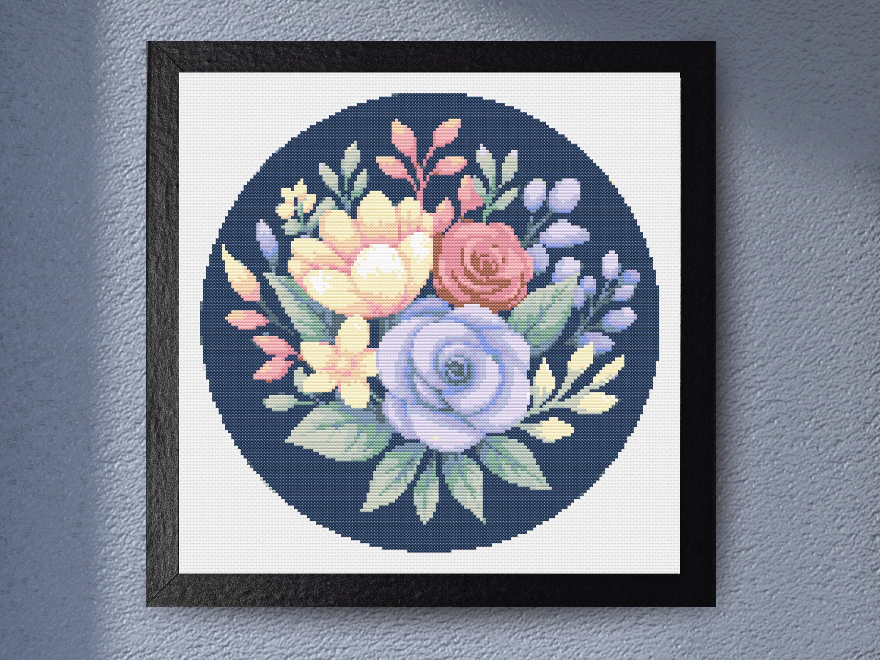 Floral Bouquet Cross Stitch Pattern β Elegant Round Embroidery, Vintage Botanical DesignItem #LTJ-1028