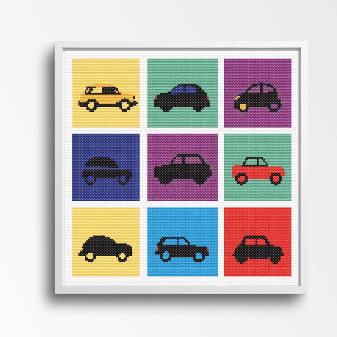Retro Cars Pop Art Cross Stitch Pattern - Colorful Vintage Car Silhouettes Step back in time with this captivating Retro Cars Pop Art Cross Stitch Pattern featuring colorful vintage car silhouettes. With a stitch count of 150 x 150, this counted cross-stitch design promises hours of immersive crafting enjoyment. Perfect for automotive enthusiasts or those who appreciate retro charm, this pattern adds a touch of nostalgia to any space. Whether you're a seasoned cross-stitcher or a beginner looking for a fun project, this piece is ideal for creating unique automotive decor. Embrace the beauty of yesteryear and infuse your living space with the timeless allure of vintage cars with this delightful cross-stitch pattern. Step into the world of classic automobiles with our "Retro Cars Pop Art Cross Stitch Pattern." This vibrant design features iconic car silhouettes in a fun, pop art style thatβs perfect for any car enthusiast or lover of unique, retro-inspired decor. Pattern Details: Design Area: Approximately [150 x 150 stitches] Fabric: Recommended on 14-count Aida cloth Stitches: Full cross stitches, no backstitching or half stitches Colors: Features a bold and bright palette of primary and secondary colors with striking black car silhouettes What's Included: Your digital download will include a PDF file with the following: PDF Full-color, easy-to-follow charts with DMC color codes for a vivid and accurate palette PDF Black and white, easy-to-follow charts with DMC color codes for a vivid and accurate palette PDF File for upload to Pattern Keeper Colour SVG Patterns B&W SVG Patterns Why You'll Love This Pattern: Bold Design: A unique and colorful take on classic car silhouettes that will stand out in any room. Relaxing Hobby: Offers hours of enjoyable stitching, perfect for winding down after a long day. Home Decor: The finished piece adds a vibrant touch to modern or retro-themed rooms. Gift Idea: Ideal for car lovers or anyone who appreciates pop art and DIY crafts. Skill Level: Suitable for all skill levels, from beginners to advanced stitchers. Instant Download: After purchase, you will receive a link to download the PDF pattern instantly. No waiting, start your project right away! Rev up your creativity with this retro cars pop art cross stitch pattern. Purchase now and start stitching your own unique masterpiece! SOME COMMON CROSS STITCH TERMINOLOGY Aida β the most popular fabric to use for cross stitch with brands including DMC, Zweigart and Charles Craft. Threads are woven evenly to form squares and the most popular counts are 14 and 16 (see Count below) Back Stitch β a method of stitching to outline a cross stitch piece, usually in a dark colour. Beads β can be stitched onto a project to add depth, colour and detail. Blending β (also called Tweeding) using two or more colours of thread (usually one strand of each) in the same needle at the same time to blend the colours together when stitching. Confetti β single stitches of different colours looking like little confetti being thrown! Chart β the cross stitch pattern to work from when stitching. Count β the number of holes per inch. Often you will hear β14 countβ meaning 14 holes (or squares) in one inch of the fabric. Counted Cross Stitch β the fabric is plain and you use a printed or digital pattern as a guide to help you place each stitch. DMC β one of the most popular brands of thread (or floss) used for embroidery and cross stitch. It comes in hundreds of different colours and effects.