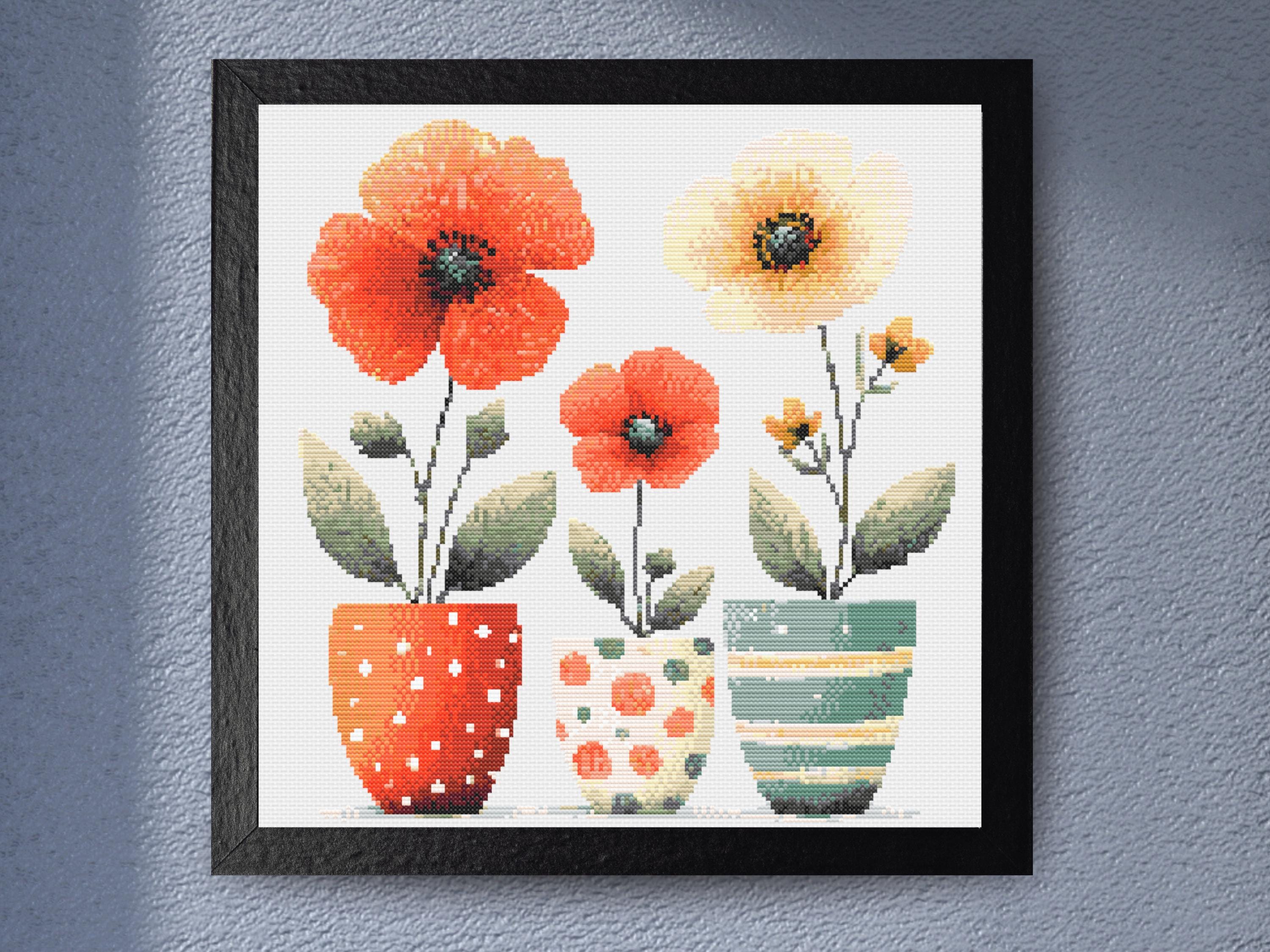 Title Poppy Cross Stitch Pattern Easy Floral Embroidery Design Modern Botanical Counted Chart PDF for Handmade Gift or Wall Art Download Description This modern poppy cross stitch pattern features a simple floral arrangement of stylized red-orange poppies in a subtle, cylindrical pot. The clean, minimal design emphasizes natural shapes and colors, creating a contemporary piece that works beautifully as wall decor or a thoughtful handmade gift. The composition uses a limited palette of coral reds, soft greens, and neutral tones to bring the illustration to life in cross stitch form. Designed for ease and elegance, the pattern uses only full cross stitches and is formatted for all skill levels. Included are multiple file types to match your stitching preferences—whether you use Pattern Keeper or prefer printing your charts. This pattern is ideal for stitchers looking for a straightforward yet striking floral design. Pattern Details Design Area: Approximately 170 x 170 stitches (12.1 x 12.1 inches on 14-count Aida) Actual Number of Cross Stitches: 14,310 Fabric: 14 Count Aida (recommended) but can be stitched on any fabric count of your choice. Just remember to adjust the fabric size and number of threads used accordingly / to your preference. Stitch Types: Full cross stitches only Colors Required: 29 DMC colors Color Palette: Soft coral reds and muted greens balanced with earthy neutrals, offering a calm and modern floral aesthetic What’s Included PDF Full-color chart with DMC color codes PDF Black & white chart with DMC color codes PDF optimized for Pattern Keeper SVG Pattern files in color and black & white Why You’ll Love This Pattern - Clean and modern floral composition - Easy to follow and quick to complete - Great for contemporary home decor or handmade gifts - Multiple formats for every stitching setup - Ideal for relaxing weekend projects Skill Level All skill levels: beginner, intermediate, and advanced Instant Download This cross stitch pattern PDF is available instantly after purchase via download — no physical product will be shipped. SOME COMMON CROSS STITCH TERMINOLOGY Aida – the most popular fabric to use for cross stitch with brands including DMC, Zweigart and Charles Craft. Threads are woven evenly to form squares and the most popular counts are 14 and 16 (see Count below) Back Stitch – a method of stitching to outline a cross stitch piece, usually in a dark colour. Beads – can be stitched onto a project to add depth, colour and detail. Blending – (also called Tweeding) using two or more colours of thread (usually one strand of each) in the same needle at the same time to blend the colours together when stitching. Confetti – single stitches of different colours looking like little confetti being thrown! Chart – the cross stitch pattern to work from when stitching. Count – the number of holes per inch. Often you will hear ’14 count’ meaning 14 holes (or squares) in one inch of the fabric. Counted Cross Stitch – the fabric is plain and you use a printed or digital pattern as a guide to help you place each stitch. DMC – one of the most popular brands of thread (or floss) used for embroidery and cross stitch. It comes in hundreds of different colours and effects. © Copyright littlethingsbyjoe By purchasing this cross stitch pattern you agree to use these patterns solely for your own crafting projects. Any copying, sharing or selling of the digital files is prohibited.