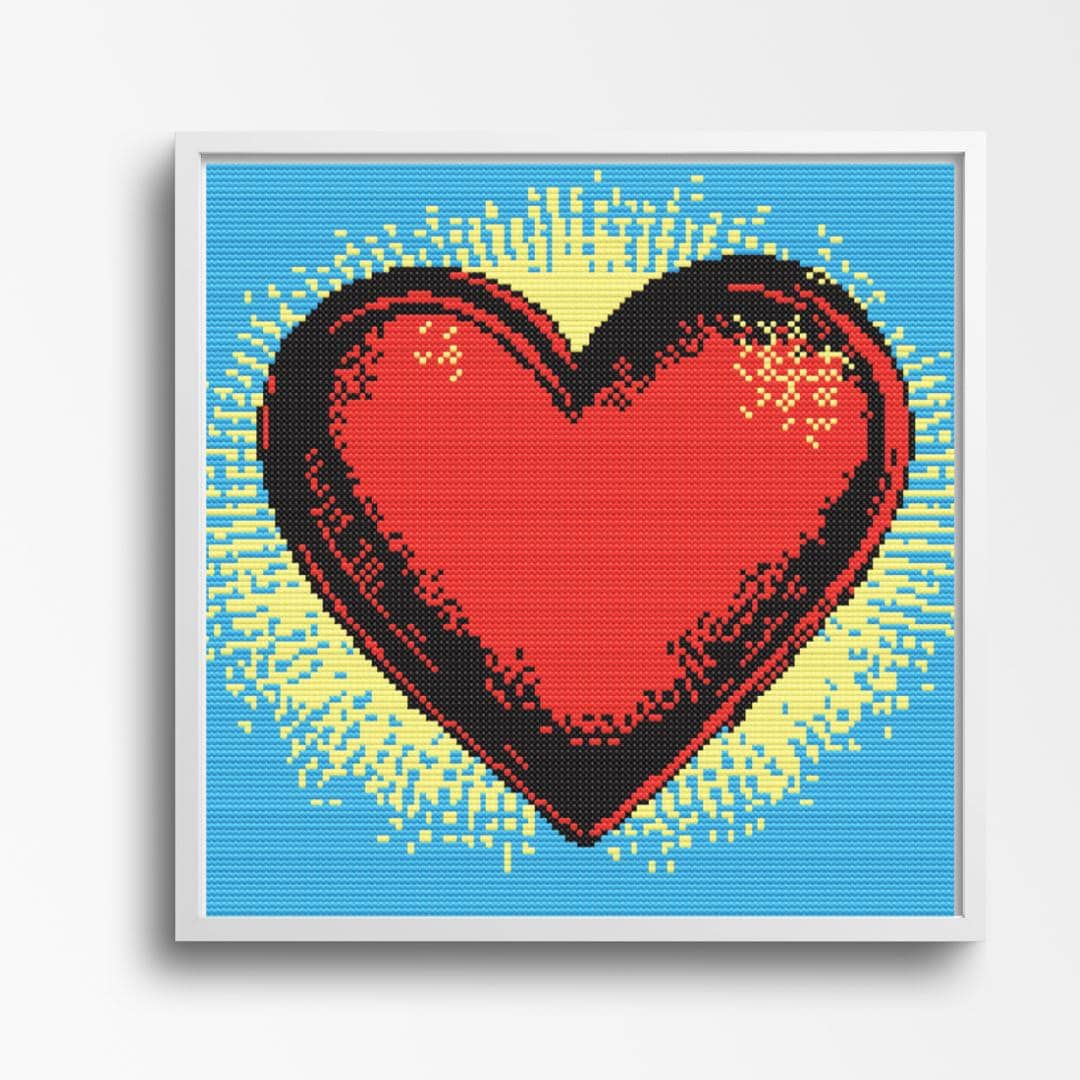 Pop Art Heart - Valentine Cross-Stitch Pattern - Retro Vibrancy in Bold ColorsItem #LTJ-1464