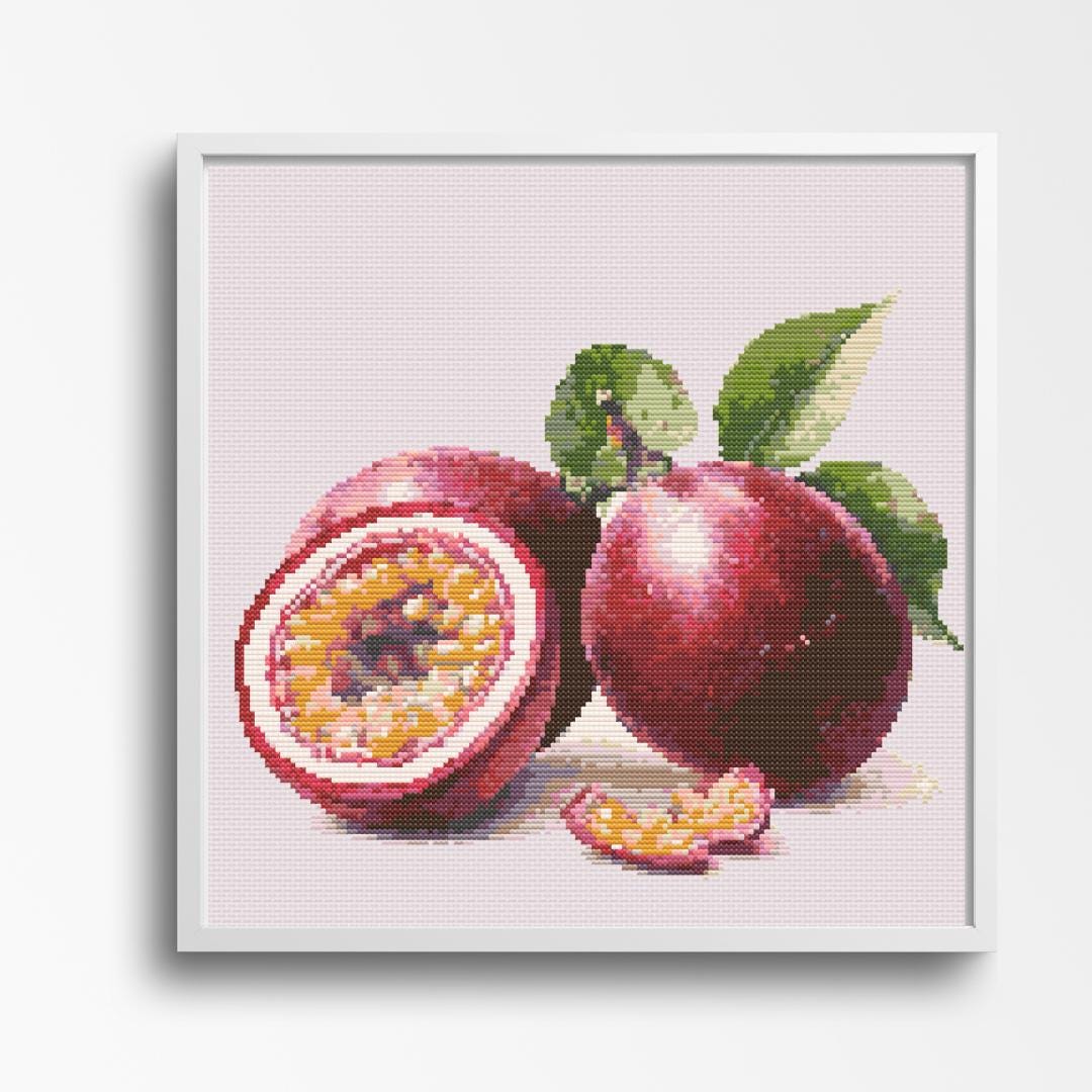 Title:Passion Fruit Cross Stitch Pattern - Cross-Stitch Pattern of Passion Fruit a Tropical Delight with Lush Green Leaves. Description: Capture the vibrant beauty of tropical nature with this detailed passion fruit cross-stitch pattern. Featuring the rich purples of the ripe fruit, the golden seeds inside a halved passion fruit, and lush green leaves, this design celebrates the natural allure of exotic fruits. Perfect for food enthusiasts or those who appreciate botanical artistry, this pattern is a joy to create and display. Pattern Details: Design Area: Approximately 150 x 150 stitches Fabric: 14 Count Aida - 10.75in x 10.75in Stitched image size - 16.75in x 16.75in Suggested Fabric size Stitches: Full cross stitches, no backstitching or half stitches Colors Required: 30 What's Included: PDF Full-color chart with DMC color codes PDF Black and white chart with DMC color codes PDF File for upload to Pattern Keeper Color SVG Patterns B&W SVG Patterns Instant Download: Pattern will be available for instant download upon purchase. SOME COMMON CROSS STITCH TERMINOLOGY Aida โ the most popular fabric to use for cross stitch with brands including DMC, Zweigart and Charles Craft. Threads are woven evenly to form squares and the most popular counts are 14 and 16 (see Count below) Back Stitch โ a method of stitching to outline a cross stitch piece, usually in a dark colour. Beads โ can be stitched onto a project to add depth, colour and detail. Blending โ (also called Tweeding) using two or more colours of thread (usually one strand of each) in the same needle at the same time to blend the colours together when stitching. Confetti โ single stitches of different colours looking like little confetti being thrown! Chart โ the cross stitch pattern to work from when stitching. Count โ the number of holes per inch. Often you will hear โ14 countโ meaning 14 holes (or squares) in one inch of the fabric. Counted Cross Stitch โ the fabric is plain and you use a printed or digital pattern as a guide to help you place each stitch. DMC โ one of the most popular brands of thread (or floss) used for embroidery and cross stitch. It comes in hundreds of different colours and effects.