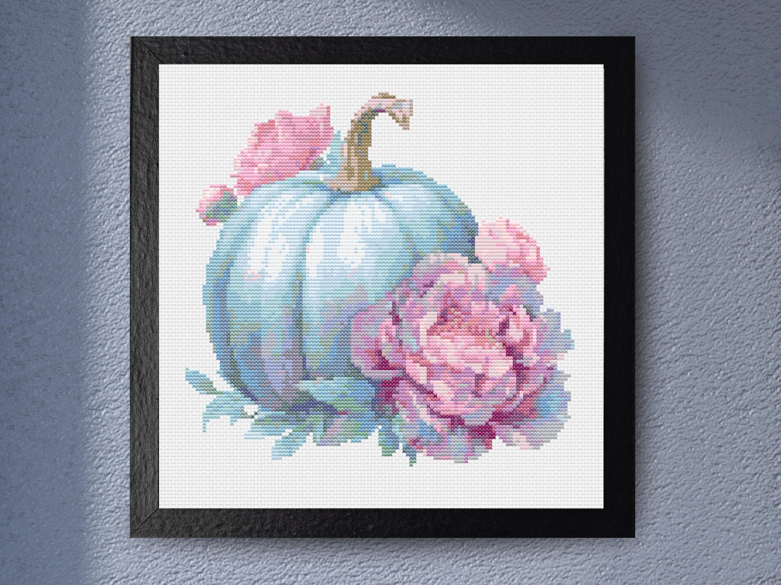 Elegant Blue Pumpkin and Peony Cross Stitch PatternItem #LTJ-1158