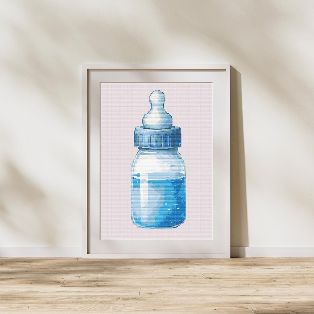 Title: Baby Bottle Cross-Stitch Pattern for Nursery Decor and Baby Gifts Description: Capture the essence of early days with this adorable baby bottle cross-stitch pattern. Featuring a soft blue palette, this design is perfect for nursery decor, baby showers, or as a heartfelt handmade gift. Its simplicity and charm make it a sweet addition to any baby-themed project or room. Pattern Details: Design Area: Approximately 140 x 200 Stitches Fabric: 14 Count Aida - 10in x 14.25in Stithced image Size - 16in x 20.25in Suggested Fabric Size Stitches: Full cross stitches, no backstitching or half stitches Colors Required: 18 Colors: A calming mix of light and soft blues, adding a peaceful and baby-friendly touch. What's Included: PDF Full-color chart with DMC color codes PDF Black and white chart with DMC color codes PDF File for upload to Pattern Keeper Color SVG Patterns B&W SVG Patterns Why You'll Love This Pattern: Perfectly suited for creating baby shower gifts, nursery decor, and keepsakes. Easy-to-follow design thatβs relaxing to stitch and satisfying to complete. Suitable for beginners and seasoned stitchers alike, making it a versatile project for any skill level. Skill Level: Suitable for all skill levels, from beginners to advanced stitchers Instant Download: Pattern will be available for instant download upon purchase. SOME COMMON CROSS STITCH TERMINOLOGY Aida β the most popular fabric to use for cross stitch with brands including DMC, Zweigart and Charles Craft. Threads are woven evenly to form squares and the most popular counts are 14 and 16 (see Count below) Back Stitch β a method of stitching to outline a cross stitch piece, usually in a dark colour. Beads β can be stitched onto a project to add depth, colour and detail. Blending β (also called Tweeding) using two or more colours of thread (usually one strand of each) in the same needle at the same time to blend the colours together when stitching. Confetti β single stitches of different colours looking like little confetti being thrown! Chart β the cross stitch pattern to work from when stitching. Count β the number of holes per inch. Often you will hear β14 countβ meaning 14 holes (or squares) in one inch of the fabric. Counted Cross Stitch β the fabric is plain and you use a printed or digital pattern as a guide to help you place each stitch. DMC β one of the most popular brands of thread (or floss) used for embroidery and cross stitch. It comes in hundreds of different colours and effects.