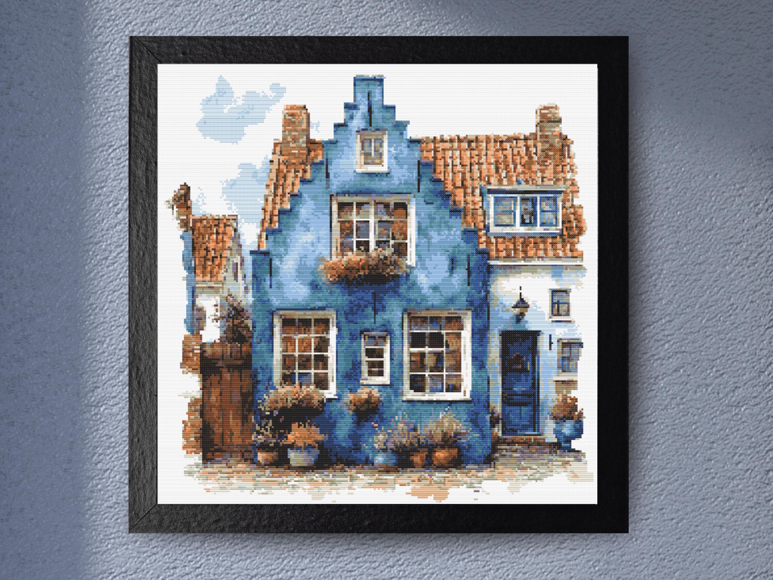 Charming Blue House โ Quaint Dutch Cottage SceneItem #LTJ-1493