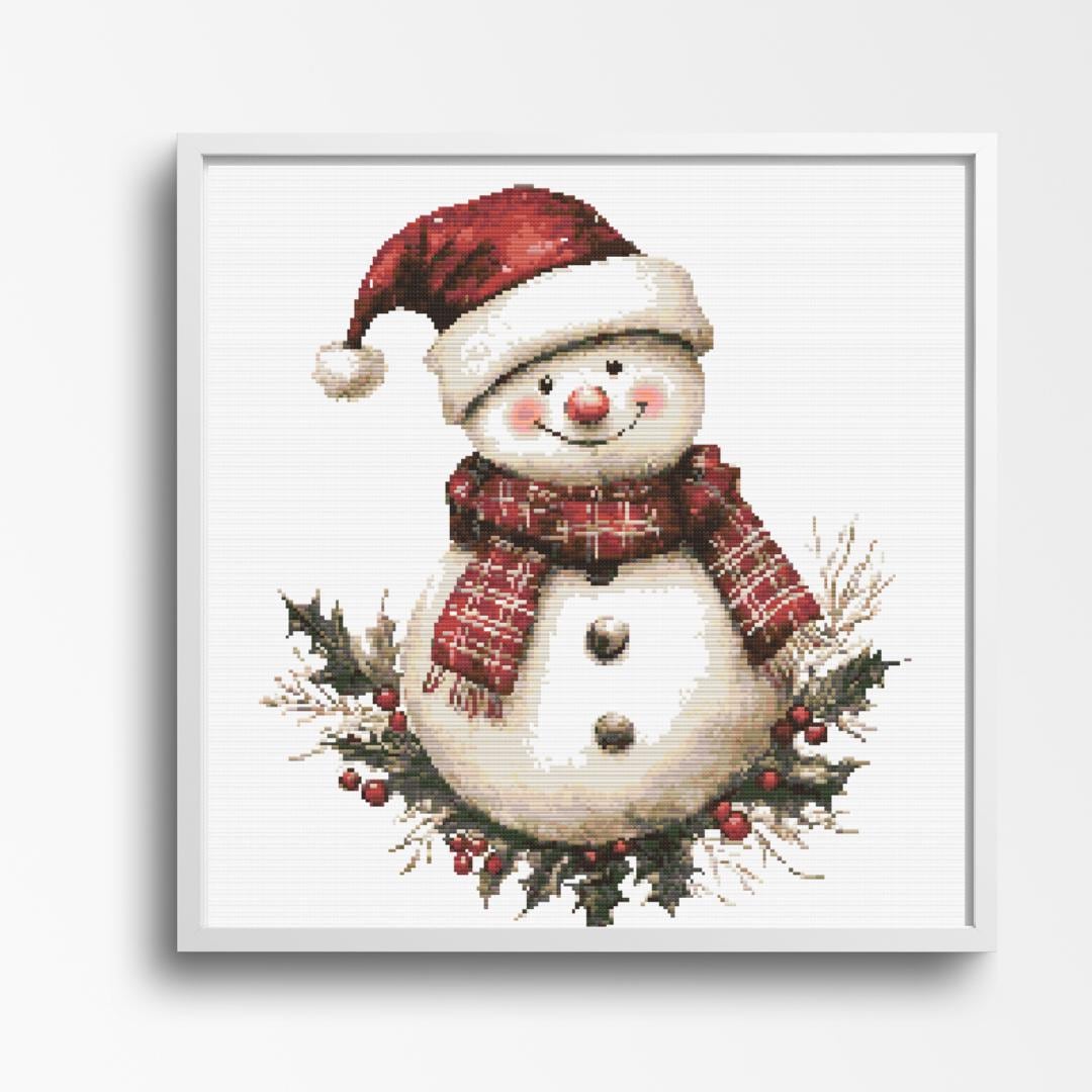 Chirstmas Snowman Cross Stitch Pattern Description: This cheerful snowman cross stitch pattern captures the magic of winter with its joyful smile, festive red plaid scarf, and holly wreath base. Perfect for holiday décor, gift-giving, or adding a cozy touch to your stitching collection. Pattern Details: Design Area: Approximately 200 x 200 Stitches Fabric: 14 Count Aida - 14.25in x 14.25in Stitched Image Size - 20.25in x 20.25in Suggested Fabric Size Stitches: Full cross stitches, no backstitching or half stitches Colors Required: 28 Colors: A mix of classic winter hues with rich reds, snowy whites, and vibrant greens for a cheerful holiday palette. What's Included: PDF Full-color chart with DMC color codes PDF Black and white chart with DMC color codes PDF File for upload to Pattern Keeper Color SVG Patterns B&W SVG Patterns Why You'll Love This Pattern: Perfect addition to your winter or holiday décor Fun and relaxing project for all skill levels Makes a thoughtful, handmade gift for snowman lovers and festive enthusiasts Skill Level: Suitable for all skill levels, from beginners to advanced stitchers Instant Download: Pattern will be available for instant download upon purchase. SOME COMMON CROSS STITCH TERMINOLOGY Aida – the most popular fabric to use for cross stitch with brands including DMC, Zweigart and Charles Craft. Threads are woven evenly to form squares and the most popular counts are 14 and 16 (see Count below) Back Stitch – a method of stitching to outline a cross stitch piece, usually in a dark colour. Beads – can be stitched onto a project to add depth, colour and detail. Blending – (also called Tweeding) using two or more colours of thread (usually one strand of each) in the same needle at the same time to blend the colours together when stitching. Confetti – single stitches of different colours looking like little confetti being thrown! Chart – the cross stitch pattern to work from when stitching. Count – the number of holes per inch. Often you will hear ’14 count’ meaning 14 holes (or squares) in one inch of the fabric. Counted Cross Stitch – the fabric is plain and you use a printed or digital pattern as a guide to help you place each stitch. DMC – one of the most popular brands of thread (or floss) used for embroidery and cross stitch. It comes in hundreds of different colours and effects.