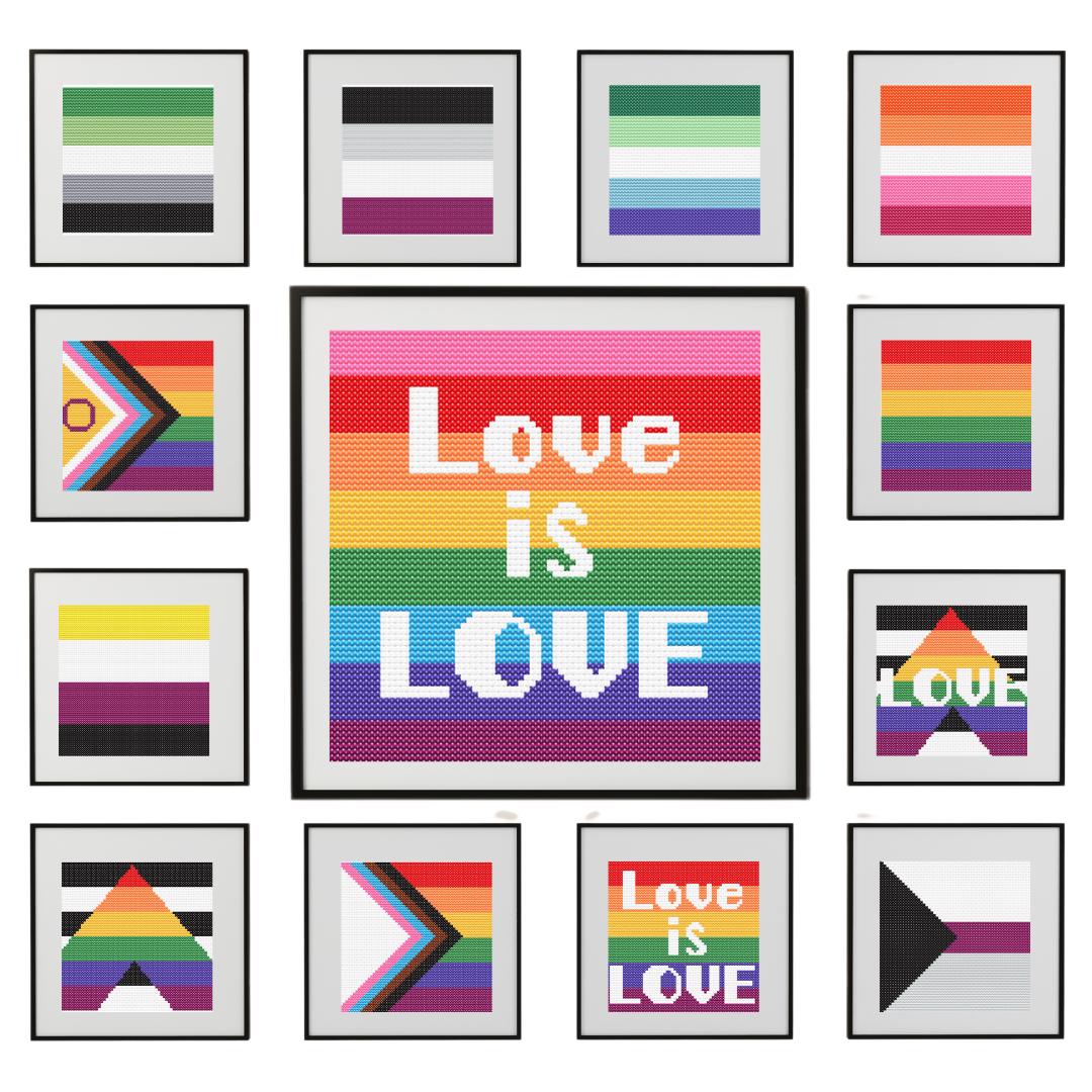 Title: Love is Love Cross Stitch Pattern Set - LGBTQ+ Pride Flag Collection Description: Celebrate love and inclusivity with this Love is Love Cross Stitch Pattern Set, featuring a stunning collection of LGBTQ+ pride flags in vibrant rainbow hues. This set includes multiple designs, from the classic rainbow flag to modern variations like the Progress Pride Flag, Transgender Flag, Non-Binary Flag, Asexual Flag, and more. Whether you're looking to create a statement piece of pride art or a thoughtful handmade gift, this set is a perfect way to express love, identity, and unity through stitching. Pattern Details: Design Area: Approximately 100 x 50 / 100 x 60 / 100 x 80 stitches Fabric: Recommended on 14-count Aida fabric Stitches: Full cross stitches, no backstitching or half stitches Colors: A bold and diverse palette featuring bright reds, deep blues, radiant yellows, greens, purples, and soft pastels, representing various LGBTQ+ identities. What's Included: โ PDF Full-color chart with DMC color codes โ PDF Black and white chart with DMC color codes โ PDF File for upload to Pattern Keeper โ Color SVG Patterns โ B&W SVG Patterns Why You'll Love This Pattern Set: ๐ณ๏ธโ๐ Celebrate Pride โ Stitch meaningful designs that honor LGBTQ+ identities and diversity. ๐จ Bright & Bold Colors โ Eye-catching patterns that make a vibrant statement. ๐งต Easy-to-Stitch Designs โ Suitable for all stitchers, whether you're a beginner or an expert. ๐ Perfect for Gifting โ A heartfelt handmade gift for allies and LGBTQ+ loved ones. Skill Level: Suitable for all skill levels, from beginners to advanced stitchers. Instant Download: Pattern will be available for instant download upon purchase. Start stitching right away! SOME COMMON CROSS STITCH TERMINOLOGY Aida โ the most popular fabric to use for cross stitch with brands including DMC, Zweigart and Charles Craft. Threads are woven evenly to form squares and the most popular counts are 14 and 16 (see Count below) Back Stitch โ a method of stitching to outline a cross stitch piece, usually in a dark colour. Beads โ can be stitched onto a project to add depth, colour and detail. Blending โ (also called Tweeding) using two or more colours of thread (usually one strand of each) in the same needle at the same time to blend the colours together when stitching. Confetti โ single stitches of different colours looking like little confetti being thrown! Chart โ the cross stitch pattern to work from when stitching. Count โ the number of holes per inch. Often you will hear โ14 countโ meaning 14 holes (or squares) in one inch of the fabric. Counted Cross Stitch โ the fabric is plain and you use a printed or digital pattern as a guide to help you place each stitch. DMC โ one of the most popular brands of thread (or floss) used for embroidery and cross stitch. It comes in hundreds of different colours and effects.
