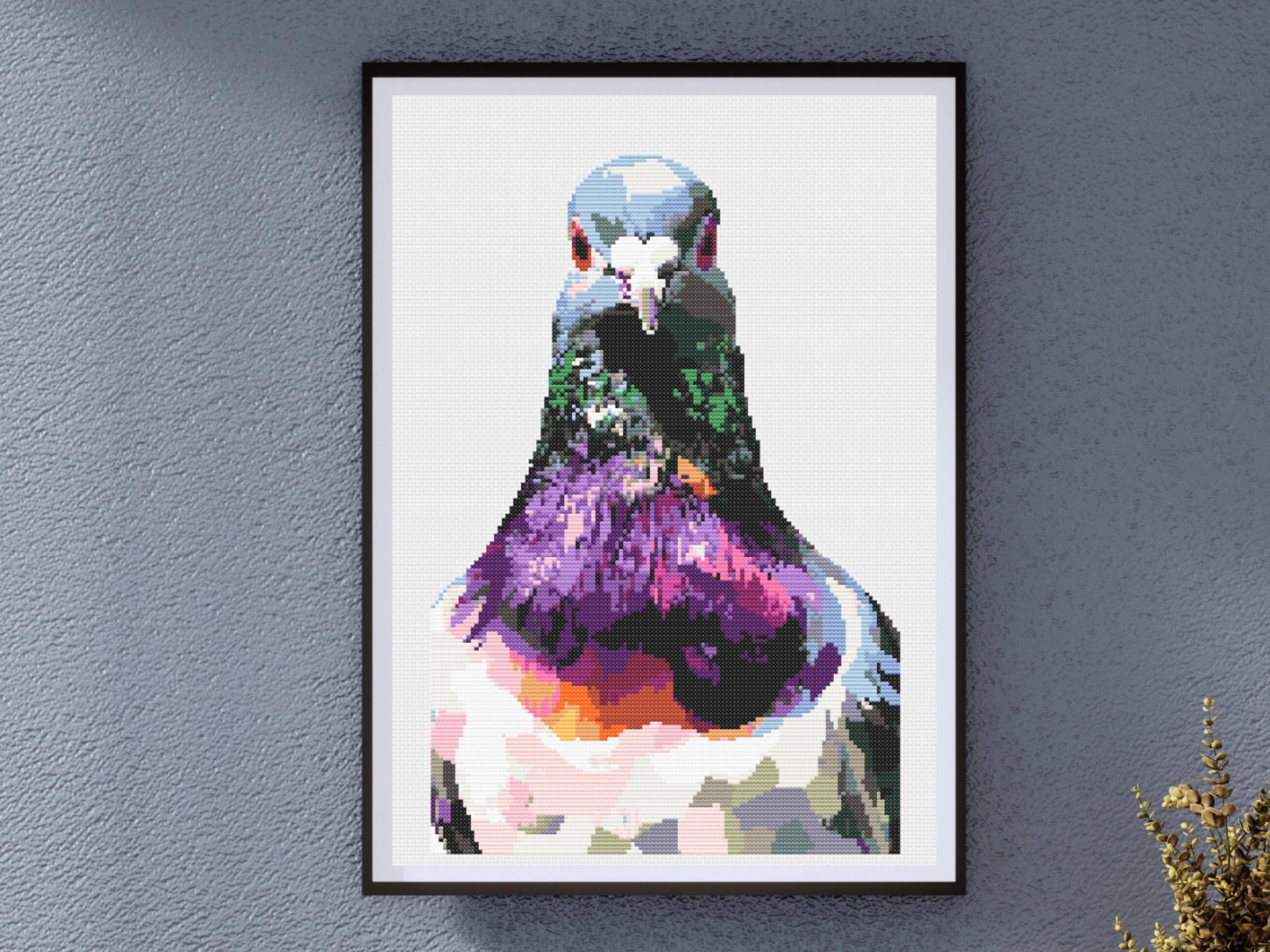 Title: Bird Cross Stitch Pattern - Colorful Pigeon, Urban Bird Portrait in Purple, Blue & Green, Modern DIY Embroidery for Bird Lovers, City Decor Description: Celebrate the often-overlooked beauty of city wildlife with this Pigeon Cross Stitch Pattern, featuring a bold and colorful portrait of a pigeon in all its iridescent glory. With a rich palette of purples, greens, blues, and peachy undertones, this design transforms an everyday urban bird into a modern work of art. Perfect for bird watchers, nature enthusiasts, or lovers of urban-inspired decor, this pattern turns the humble pigeon into a vibrant statement piece. The striking gaze and close-up composition give the design an artistic edge, ideal for framing and displaying in contemporary living spaces or eclectic gallery walls. With no backstitching and only full cross stitches, this is a fun and engaging project for any stitcher who loves working with bold color blends and unique subjects. Pattern Details: Design Area: Approximately 140 x 210 stitches Actual Number of Cross Stitches: 14,027 Fabric: 14 Count Aida (recommended) Stitch Types: Full cross stitches only (no backstitching or half stitches) Colors Required: 25 DMC colors Color Palette: A rich spectrum including plum purple, emerald green, soft sky blue, warm peach, and dark charcoal—capturing the light-play and vibrancy of pigeon feathers What's Included: PDF Full-color chart with DMC color codes PDF Black & white chart with DMC color codes PDF optimized for Pattern Keeper SVG Pattern files in color and black & white Why You'll Love This Pattern: A bold and unique subject for modern cross stitchers Rich, expressive colors and artistic realism Perfect for city lovers, bird watchers, or statement wall art Skill Level: Suitable for all skill levels: beginner, intermediate, and advanced Instant Download: This pattern is a digital download, available instantly after purchase. No waiting—just download, print, and stitch! SOME COMMON CROSS STITCH TERMINOLOGY Aida – the most popular fabric to use for cross stitch with brands including DMC, Zweigart and Charles Craft. Threads are woven evenly to form squares and the most popular counts are 14 and 16 (see Count below) Back Stitch – a method of stitching to outline a cross stitch piece, usually in a dark colour. Beads – can be stitched onto a project to add depth, colour and detail. Blending – (also called Tweeding) using two or more colours of thread (usually one strand of each) in the same needle at the same time to blend the colours together when stitching. Confetti – single stitches of different colours looking like little confetti being thrown! Chart – the cross stitch pattern to work from when stitching. Count – the number of holes per inch. Often you will hear ’14 count’ meaning 14 holes (or squares) in one inch of the fabric. Counted Cross Stitch – the fabric is plain and you use a printed or digital pattern as a guide to help you place each stitch. DMC – one of the most popular brands of thread (or floss) used for embroidery and cross stitch. It comes in hundreds of different colours and effects. © 2025 littlethingsbyjoe by Jolene Underwood