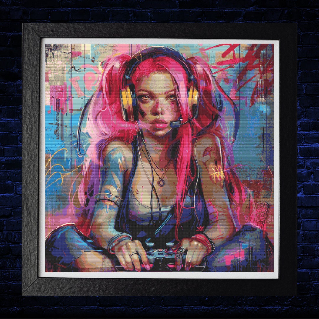 Two for the price of one. Press start on a handcrafted journey with 'Gaming Duo: His & Hers Cross Stitch Set,' the perfect pair of patterns for the joystick jockeys and console queens in your life! This set presents a riveting depiction of a gamer guy and girl, each lost in the digital ecstasy of their own virtual realm. Bursting with vivid colors and intricate details, these patterns pay tribute to the vibrant gaming culture and the camaraderie within. As you delve into this cross stitch quest, you'll weave the electric atmosphere of an epic gaming session. The intensity in their eyes, the grip on their controllers, and the backdrop of their personal gaming sanctuaries will come to life under your needle. The 'Gaming Duo' set is an ideal craft for personalizing your gaming space, creating a thoughtful present for that special gamer couple, or simply for celebrating the joy of gaming. Display them side by side for the full 'player one and player two' effect! Your digital download will include a PDF file with a link to the following; * Full-color, easy-to-follow charts with DMC color codes for a vivid and accurate palette. * Black and white, easy-to-follow charts with DMC color codes for a vivid and accurate palette. * Colour SVG Patterns * B&W SVG Patterns THE TOP CROSS STITCH TERMS YOU NEED TO KNOW Aida โ the most popular fabric to use for cross stitch with brands including DMC, Zweigart and Charles Craft. Threads are woven evenly to form squares and the most popular counts are 14 and 16 (see Count below) Back Stitch โ a method of stitching to outline a cross stitch piece, usually in a dark colour. Beads โ can be stitched onto a project to add depth, colour and detail. Blending โ (also called Tweeding) using two or more colours of thread (usually one strand of each) in the same needle at the same time to blend the colours together when stitching. Confetti โ single stitches of different colours looking like little confetti being thrown! Chart โ the cross stitch pattern to work from when stitching. Count โ the number of holes per inch. Often you will hear โ14 countโ meaning 14 holes (or squares) in one inch of the fabric. Counted Cross Stitch โ the fabric is plain and you use a printed or digital pattern as a guide to help you place each stitch. DMC โ one of the most popular brands of thread (or floss) used for embroidery and cross stitch. It comes in hundreds of different colours and effects.