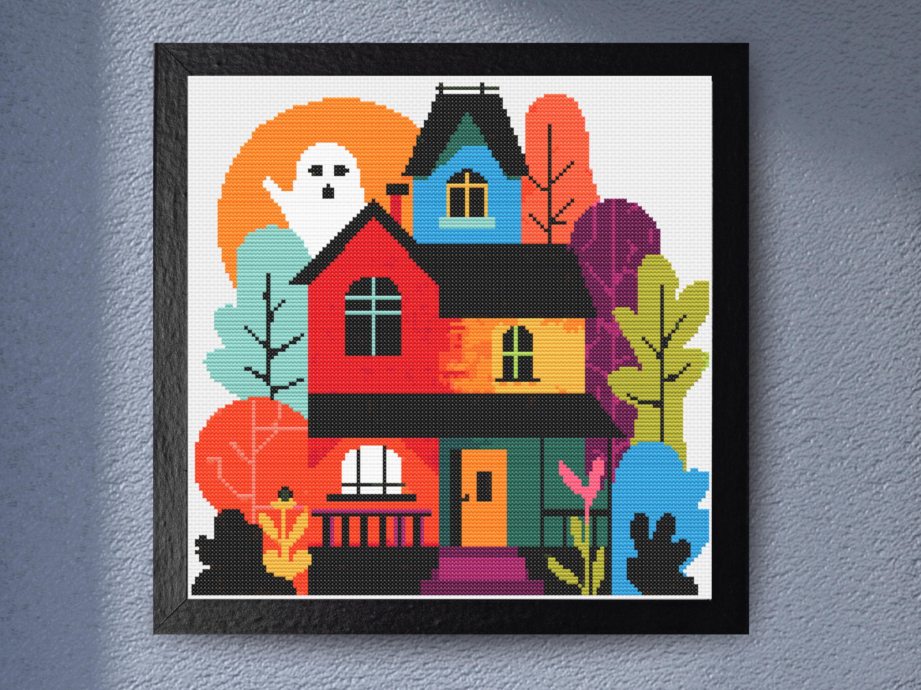 Title Haunted House Halloween Cross Stitch Pattern with Ghost – Colorful Gothic Mansion Embroidery PDF for Counted Cross Stitch Decor Description Step into a playful world of spooky charm with this Haunted House Halloween Cross Stitch Pattern. Featuring a cheerful ghost rising behind a multicolored Victorian-style mansion, this vibrant design blends classic haunted motifs with bold, modern color blocking. It’s a joyful take on spooky season, perfect for adding Halloween flair to your stitching collection or home decor. Surrounded by whimsical autumn trees and set against a glowing orange moon, this pattern bursts with personality. The strong lines and saturated hues make it ideal for stitchers who love expressive, high-impact designs. From the ghost’s surprised expression to the mansion’s gothic windows, every detail pops on fabric. This pattern is perfect for Halloween lovers, gothic embroidery fans, or anyone seeking a counted cross stitch project with both seasonal charm and playful artistry. Great for gifting or decorating your walls with spooky elegance and fun. Pattern Details Design Area: Approximately 140 x 140 stitches (10 x 10 inches on 14-count Aida) Actual Number of Cross Stitches: 15,842 Fabric: 14 Count Aida (recommended) but can be stitched on any fabric count of your choice. Just remember to adjust the fabric size and number of threads used accordingly / to your preference. Stitch Types: Full cross stitches only Colors Required: 21 DMC colors Color Palette: Bold primaries, vivid orange, rich purples, and deep black with pops of teal and chartreuse for festive contrast What’s Included PDF Full-color chart with DMC color codes PDF Black & white chart with DMC color codes PDF optimized for Pattern Keeper SVG Pattern files in color and black & white Why You’ll Love This Pattern - Whimsical twist on classic Halloween haunted house - Vibrant, eye-catching colors with gothic inspiration - Perfect seasonal decor or fun gift project - Suitable for beginners or advanced stitchers - Includes multiple chart options for every preference Skill Level Suitable for all skill levels: beginner, intermediate, and advanced Instant Download This cross stitch pattern PDF is available instantly after purchase via download — no physical product will be shipped. Some common Cross stitch terminology Aida – the most popular fabric to use for cross stitch with brands including DMC, Zweigart and Charles Craft. Threads are woven evenly to form squares and the most popular counts are 14 and 16 (see Count below) Back Stitch – a method of stitching to outline a cross stitch piece, usually in a dark colour. Beads – can be stitched onto a project to add depth, colour and detail. Blending – (also called Tweeding) using two or more colours of thread (usually one strand of each) in the same needle at the same time to blend the colours together when stitching. Confetti – single stitches of different colours looking like little confetti being thrown! Chart – the cross stitch pattern to work from when stitching. Count – the number of holes per inch. Often you will hear ’14 count’ meaning 14 holes (or squares) in one inch of the fabric. Counted Cross Stitch – the fabric is plain and you use a printed or digital pattern as a guide to help you place each stitch. DMC – one of the most popular brands of thread (or floss) used for embroidery and cross stitch. It comes in hundreds of different colours and effects. © Copyright littlethingsbyjoe By purchasing this cross stitch pattern you agree to use these patterns solely for your own crafting projects. Any copying, sharing or selling of the digital files is prohibited.