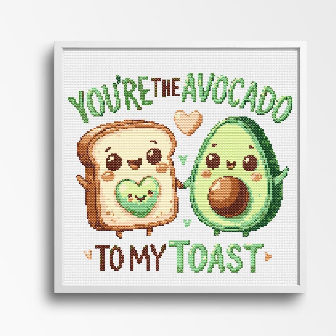 Title: You're the Avocado to My Toast - Adorable Cross Stitch Pattern Description: Celebrate love and friendship with this delightful cross-stitch pattern featuring a happy toast and avocado holding hands, complete with cute hearts and playful text. Perfect for gift-making or brightening up your space. Pattern Details: • Design Area: 145 x 130 stitches • Fabric: 14 Count Aida - 10.25 x 9.25 inches Stitched Image Size • Stitches: Full cross stitches; no backstitching or half stitches required • Colors Required: 11 • Colors: A palette of warm browns, fresh greens, and soft pastels for a cheerful vibe. What's Included: • PDF full-color charts with DMC color codes • PDF black-and-white charts with DMC color codes • PDF files compatible with Pattern Keeper • Color SVG patterns • Black-and-white SVG patterns Why You'll Love This Pattern: • Adorable design perfect for expressing affection • A fun and creative project for stitchers of all levels • Ideal for crafting thoughtful, handmade gifts Skill Level: Suitable for all skill levels, from beginners to advanced stitchers. Instant Download: Pattern will be available for instant download upon purchase. SOME COMMON CROSS STITCH TERMINOLOGY Aida – the most popular fabric to use for cross stitch with brands including DMC, Zweigart and Charles Craft. Threads are woven evenly to form squares and the most popular counts are 14 and 16 (see Count below) Back Stitch – a method of stitching to outline a cross stitch piece, usually in a dark colour. Beads – can be stitched onto a project to add depth, colour and detail. Blending – (also called Tweeding) using two or more colours of thread (usually one strand of each) in the same needle at the same time to blend the colours together when stitching. Confetti – single stitches of different colours looking like little confetti being thrown! Chart – the cross stitch pattern to work from when stitching. Count – the number of holes per inch. Often you will hear ’14 count’ meaning 14 holes (or squares) in one inch of the fabric. Counted Cross Stitch – the fabric is plain and you use a printed or digital pattern as a guide to help you place each stitch. DMC – one of the most popular brands of thread (or floss) used for embroidery and cross stitch. It comes in hundreds of different colours and effects. © 2025 littlethingsbyjoe by Jolene Underwood