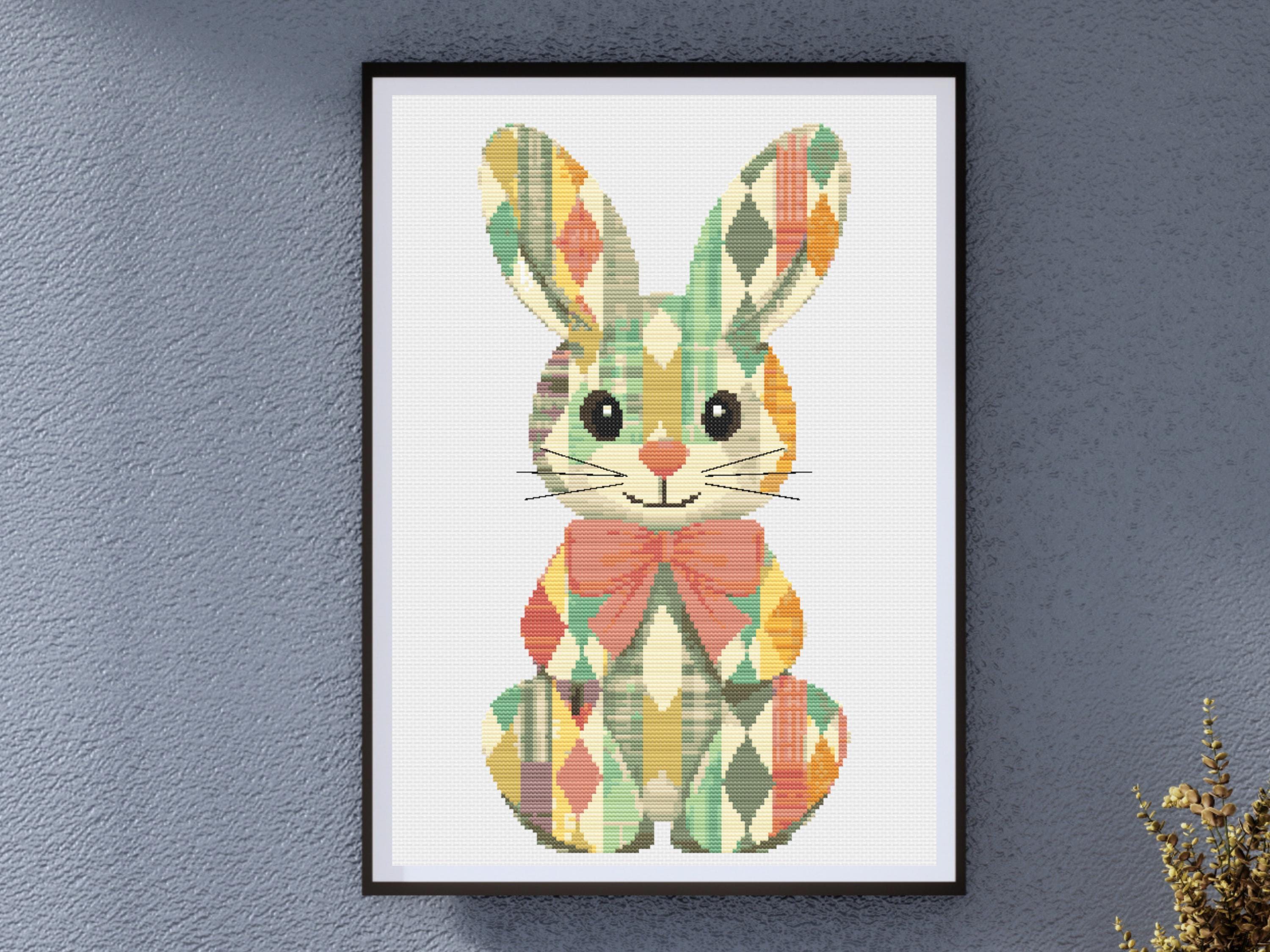 Title: Patchwork Bunny Cross Stitch Pattern - Harlequin Easter Rabbit with Bow, Spring Nursery DIY Embroidery for Baby Gifts & Seasonal Decor Description: Hop into charming stitching with this Patchwork Bunny Cross Stitch Pattern, featuring a sweet rabbit stitched in a vibrant harlequin diamond print with soft spring tones. Complete with a big coral bow and delicate whiskers stitched in minimal backstitching, this bunny brings warmth, nostalgia, and a playful vibe to your hoop. Perfect for Easter gifts, nursery decor, or baby shower stitching, this design is both cheerful and timeless. The diamond patchwork adds visual interest while maintaining a soft, vintage handmade feel. Whether you're gifting it or keeping it, this piece is sure to bring a smile. With 23 colors and just a touch of backstitching for the whiskers, this pattern offers a smooth and joyful stitching experience. Pattern Details: Design Area: Approximately 140 x 210 stitches Actual Number of Cross Stitches: 12,370 full cross stitches + small amount of backstitching (whiskers only) Fabric: 14 Count Aida (recommended) Stitch Types: Full cross stitches with minimal backstitching Colors Required: 23 DMC colors Color Palette: Warm pastels including sage greens, butter yellows, blush pinks, creams, and soft teals—perfect for spring stitching and baby gifts What's Included: PDF Full-color chart with DMC color codes PDF Black & white chart with DMC color codes PDF optimized for Pattern Keeper SVG Pattern files in color and black & white Why You'll Love This Pattern: Ideal for Easter or spring nursery themes Unique patchwork style with a handcrafted feel Simple and fun to stitch with eye-catching results Skill Level: Suitable for all skill levels: beginner, intermediate, and advanced Instant Download: This is a digital pattern, available for instant download after purchase. Print, thread up, and start stitching your patchwork bunny today! SOME COMMON CROSS STITCH TERMINOLOGY Aida – the most popular fabric to use for cross stitch with brands including DMC, Zweigart and Charles Craft. Threads are woven evenly to form squares and the most popular counts are 14 and 16 (see Count below) Back Stitch – a method of stitching to outline a cross stitch piece, usually in a dark colour. Beads – can be stitched onto a project to add depth, colour and detail. Blending – (also called Tweeding) using two or more colours of thread (usually one strand of each) in the same needle at the same time to blend the colours together when stitching. Confetti – single stitches of different colours looking like little confetti being thrown! Chart – the cross stitch pattern to work from when stitching. Count – the number of holes per inch. Often you will hear ’14 count’ meaning 14 holes (or squares) in one inch of the fabric. Counted Cross Stitch – the fabric is plain and you use a printed or digital pattern as a guide to help you place each stitch. DMC – one of the most popular brands of thread (or floss) used for embroidery and cross stitch. It comes in hundreds of different colours and effects. © 2025 littlethingsbyjoe by Jolene Underwood
