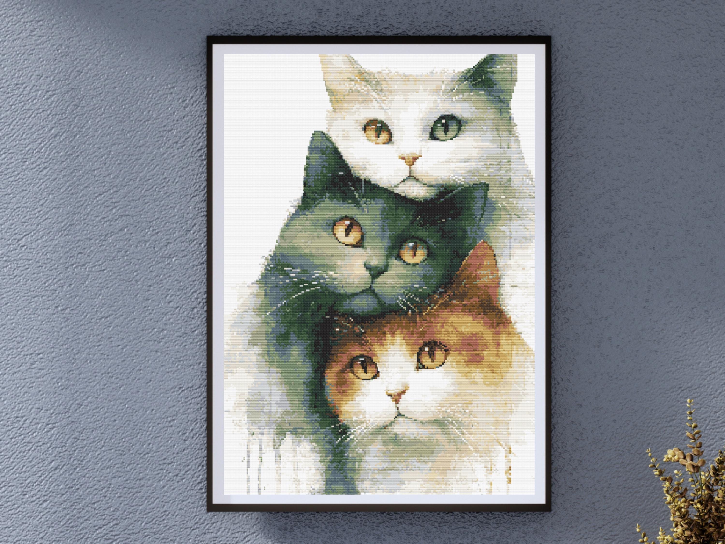 Quiet Companions Cat Trio Cross Stitch Pattern Watercolor Feline Portrait Cozy Cat Lover Home Decor Gift Idea